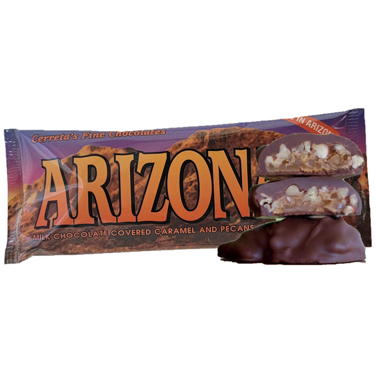 Caramel, pecans, and milk chocolate combine for a sweet, nutty Arizona treat.